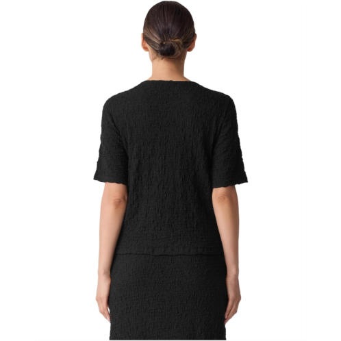 Eileen Fisher Bubble Jacquard Crew Neck Snug Knit Top: An intricate knit with substance and stretch. Crafted in a textural blend of soft cotton and recycled polyester-dress it up, dress it down. It has a crew neckline, short sleeves, and a straight hem.