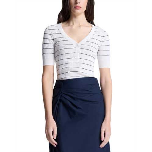 Elevate your wardrobe with the A.L.C. Francis Top, a perfect addition for women seeking bold, modern, and wearable style. This eye-catching top in bright white with navy accents features a chic button closure and is made from a luxurious blend of 78% cotton and 22% nylon. For best care, we recommend dry clean only. Imported for your convenience, this top is a must-have for any fashion-forward woman.