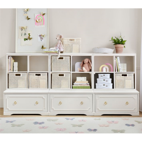 Choose the components you need to create a perfectly customized storage solution for your child’s play, sleep and study spaces. Our Ava Regency Collection pairs glamorous Hollywood-inspired details with practical organization and a modular design that can easily grow with your child, from nursery to big-kid room. Add personalized storage containers to the cubbies and bases so kids know where everything goes at the end of the day.