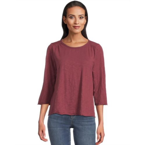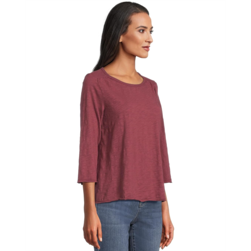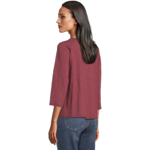 The Mod-o-doc 3/4 Sleeve Waffle Mix Media Open Crew Neck Tee is crafted from cotton fabric, offering a perfect blend of comfort and style. This casual tee is designed with elbow-length sleeves, a crew neckline, and a straight hem. Pair this crew-neck tee with denim pants or chic trousers for an effortless casual look.