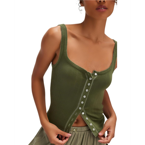 A need-now wardrobe staple, the Free People End Game Pointelle Tank is perfect for throwing on and heading out. It features a sweetheart neckline, sleeveless design, and buttoned front closure.