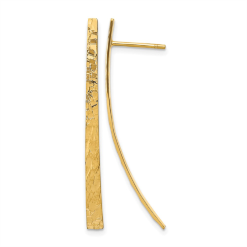 Add elegance and sparkle to your look with these 43.5mm solid 14K yellow gold earrings, featuring a diamond-cut texture that catches the light beautifully. Crafted through precise stamping, they offer a durable and polished finish, ideal for daily wear or special occasions.