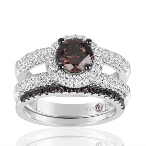 [US] Suzy Levian sterling silver brown chocolate and white cubic zirconia 2-piece engagement ring