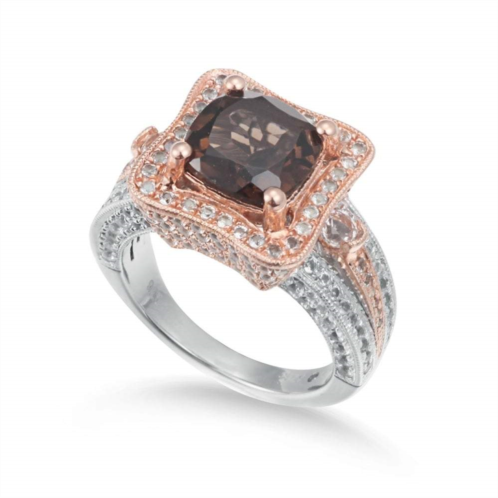 [US] Suzy Levian two-tone sterling silver 5.48 cttw cushion cut smoky quartz ring