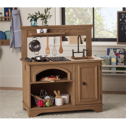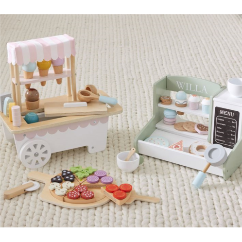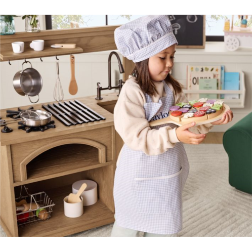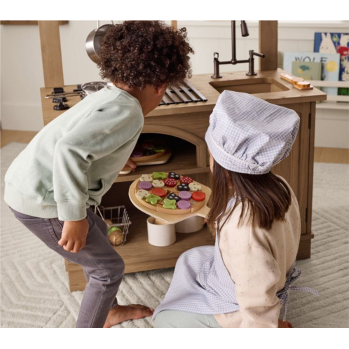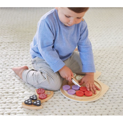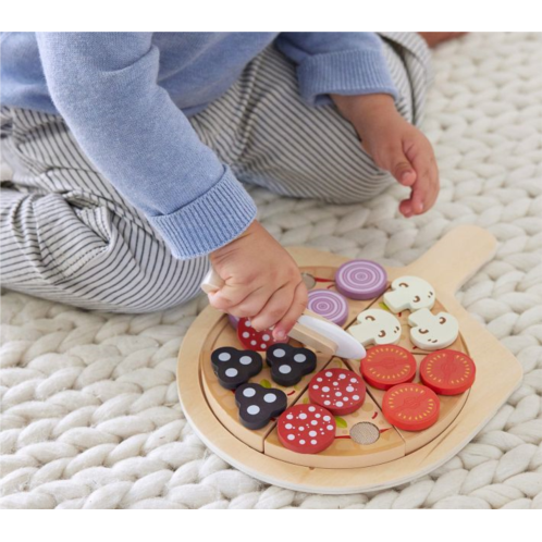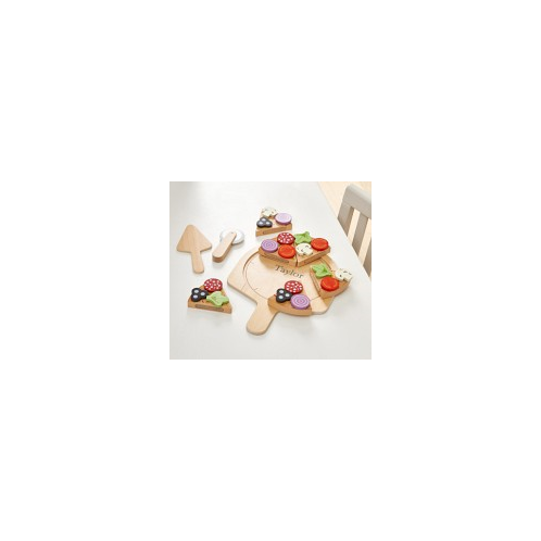 Crafted of wood and featuring all their favorite fixings, our design is perfect for pint-sized pizza lovers. A flat paddle holds a pie with six removable slices that little ones can cut and serve with a spatula. Classic toppings detailed in vivid colors let them learn about different types of food as they enjoy creative play.