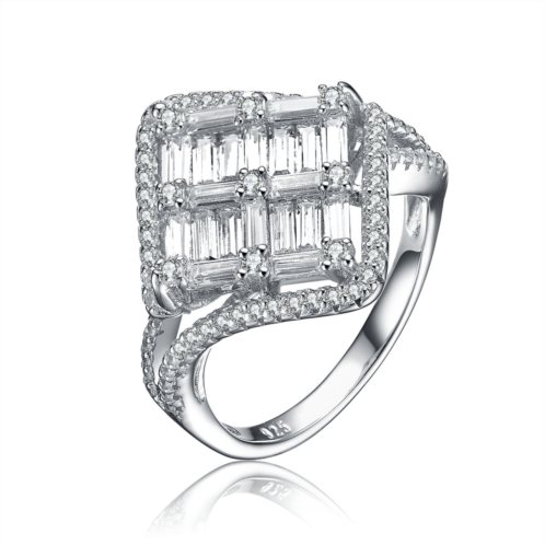 [US] Genevive sterling silver cubic zirconia cluster engagement ring