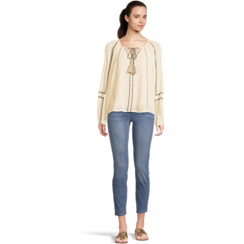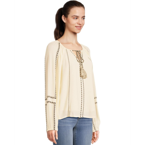 [US] Liverpool Los Angeles Long Sleeve Woven Raglan Blouse With Embroidery
