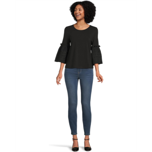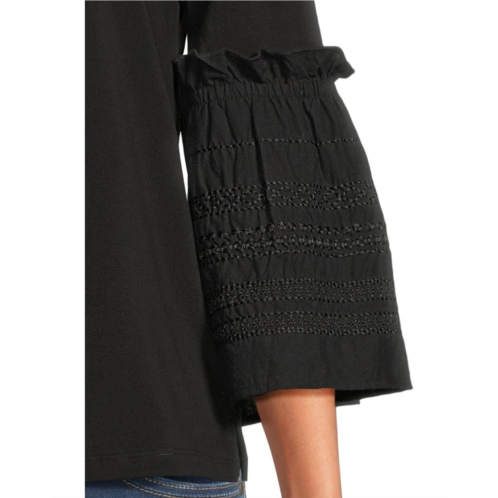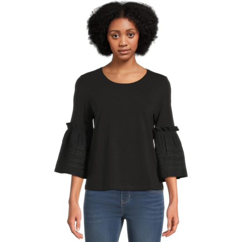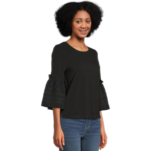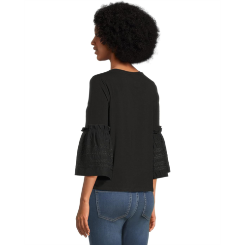 [US] Liverpool Los Angeles 3/4 Sleeve Embroidered Knit to Woven Top