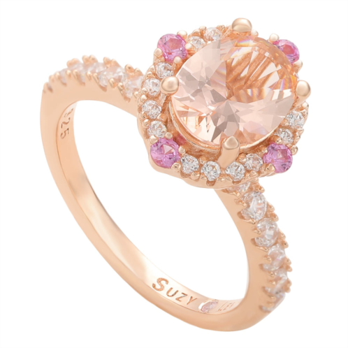[US] Suzy Levian sterling silver pink morganite cubic zirconia marquise ring