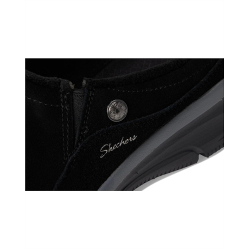 Step into cozy comfort and laid-back style with SKECHERS Easy Going - Latte 2 slip-ons. This open-back mule style features a 3M Scotchgard treated suede upper with faux fur lining and a cushioned Skechers Air-Cooled Memory Foam footbed.