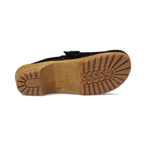 The Sanita Lissy perfect everyday clogs. Crafted from suede leather, this pair of clogs features slip-on style, round toe design, and block heel for a sleek and polished look.