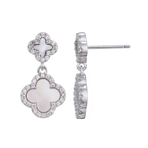 Adornia Women's Silver Plated Double White Mother of Pearl CZ Drop Earrings