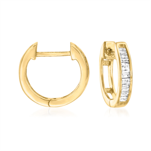 Ross-Simons is the authority on luxury classics. Major sparkle. Minimalistic style. These stylish huggie hoop earrings boast .10 ct. t.w. tapered baguette diamonds in sunny 18kt yellow gold over sterling silver settings. A chic must-have at an incredible value. Hanging length is 3/8'. Hinged post, diamond huggie hoop earrings. Each Ross-Simons item arrives in a fine jewelry presentation box. Shop Ross-Simons jewelry risk-free as all items include a 30-day, 100% money-back guarantee.