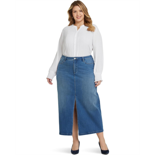 Made with Lift Tuck Technology to flatten in the front and flatter curves in the back, the NYDJ Plus Size Long Skirt is a classic wardrobe staple that you'll get endless wear out of all season long. This denim skirt is finished with a zip-fly, buttoned closure, and belt loops. Its center front slit ensures ease of movement. This high-rise skirt is crafted from cotton-blend fabric, offering superior comfort and stretch that lasts all day.