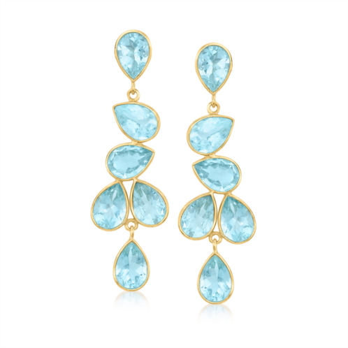 Ross-Simons is the authority on fashionable must-haves. Celebrate in style at that upcoming occasion. 20.00 ct. t.w. sky blue topaz pears tumble downward in these chic and sophisticated drop earrings crafted in 18kt yellow gold over sterling silver. Hanging length is 2 1/8'. Post/clutch, sky blue topaz drop earrings. Each Ross-Simons item arrives in a fine jewelry presentation box. Shop Ross-Simons jewelry risk-free as all items include a 30-day, 100% money-back guarantee.