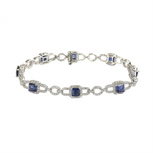 [US] Suzy Levian sterling silver asscher cut sapphire & diamond accent tennis bracelet