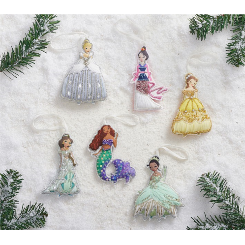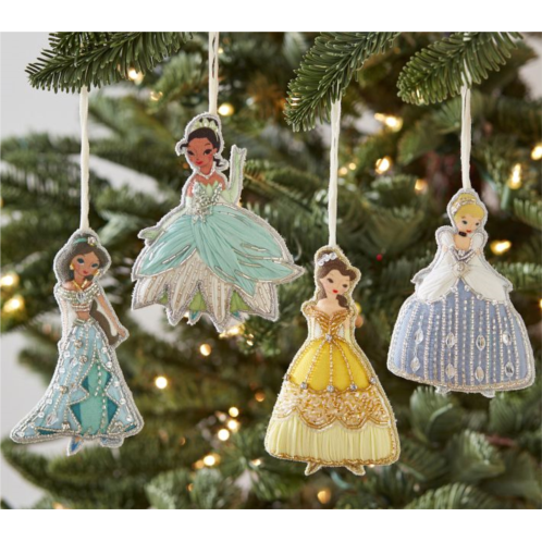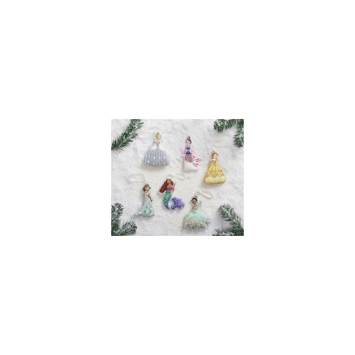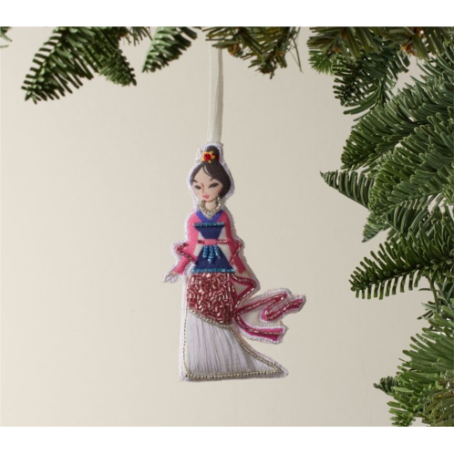 Gift the little princess in your life an ornament fit for royalty. Featuring all their favorite Disney Princess characters intricately embroidered and beaded, each one can easily be hung with the attached velvet ribbon.