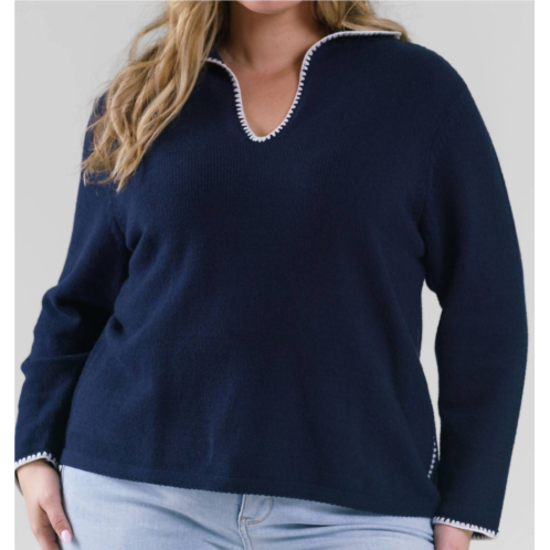 [US] Nic Zoe blanket stitch getaway sweater - plus size in dark indigo