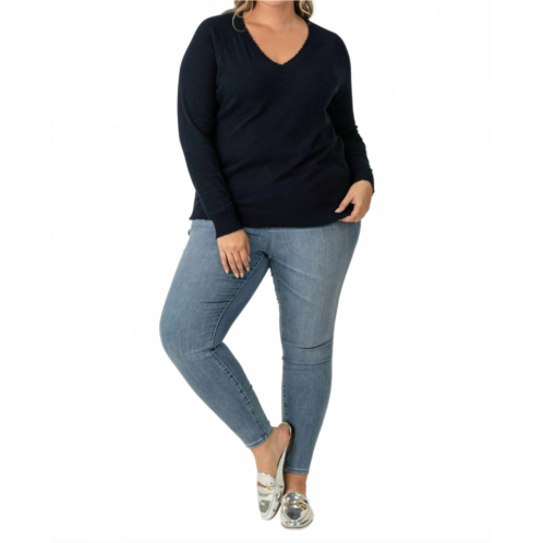 [US] Minnie Rose distressed long sleeve v-neck sweater - plus size in navy