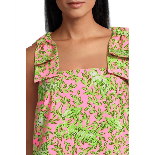 Sleek and stylish, the Lilly Pulitzer Anders Tunic is designed for effortless elegance with its straight fit, ensuring a flattering silhouette for any body type. It features a square neckline, sleeveless construction, and bow accentuated wide shoulder straps.