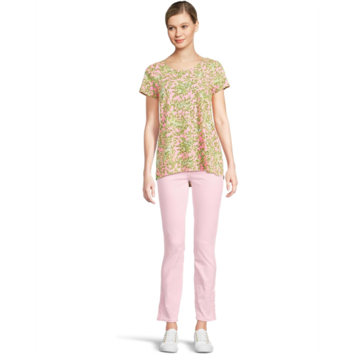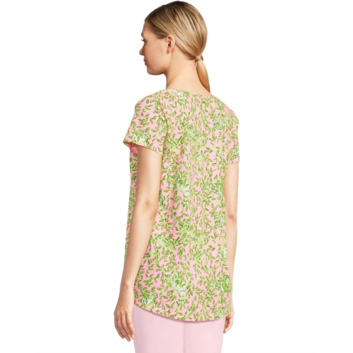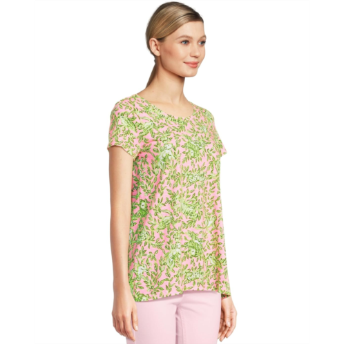 Add a touch of modern glam to your holiday looks wearing the Lilly Pulitzer Etta Scoop-Neck Top. Featuring multi-colored floral print all over, the pullover slub tee has a scoop neckline with short sleeves and curved hem.