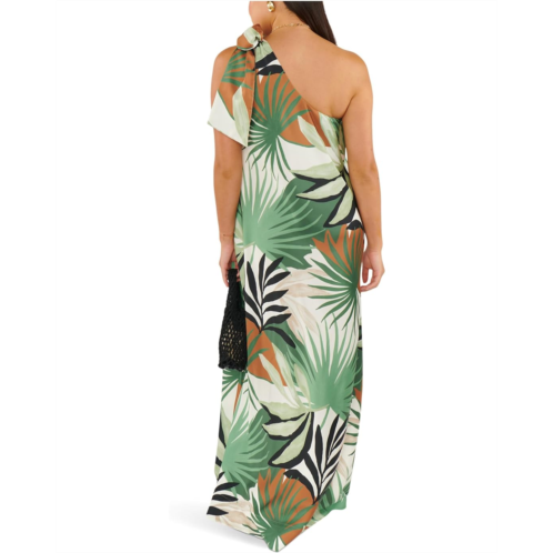 Enjoy your escape top a tropical paradise wearing the Show Me Your Mumu Jackie Maxi Dress. Featuring an oversized palm print in dreamy shades, this flowing maxi dress captures the essence of laid-back luxury. The statement shoulder tie adds a chic touch, while the lightweight silhouette ensures comfort from sunrise to sunset.
