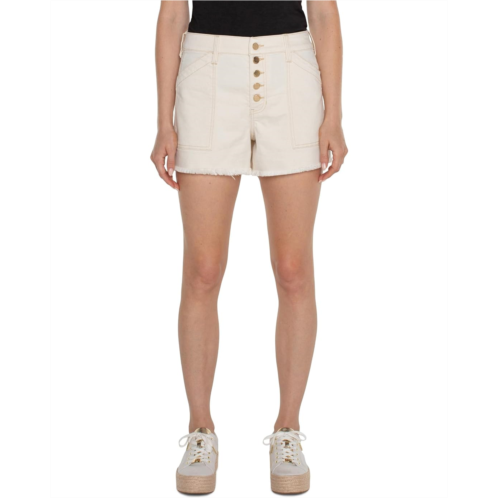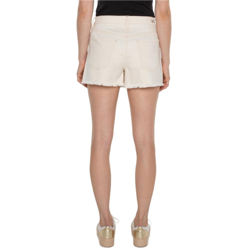 [US] Liverpool Los Angeles Utility Hi-Rise A-Line Fray Hem Exposed Button Fly Ecru Stretch Denim Short 3 1/2