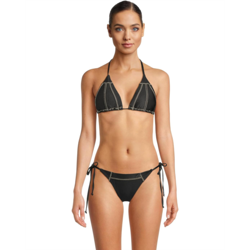 The BECCA by Rebecca Virtue Color Sheen Cheryl Triangle Top is designed for perfect swim. Featuring scoop neckline, natural contrast denim stitching, adjustable spaghetti ties at neck and back, and standard fit.