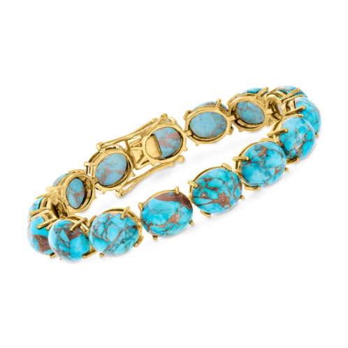 Developing fresh ways to wear timeless looks, Ross-Simons masters the classics. Multiple pieces of 12x10mm oval stabilized Mohave turquoise cabochons are uniquely joined with copper and brass markings for a bold statement. Set in polished 18kt yellow gold over sterling silver, this bracelet will give the pop of color you've been longing for. Double-latch safety. Box clasp, stabilized turquoise bracelet. Each Ross-Simons item arrives in a fine jewelry presentation box. Shop Ross-Simons jewelry risk-free as all items include a 30-day, 100% money-back guarantee.