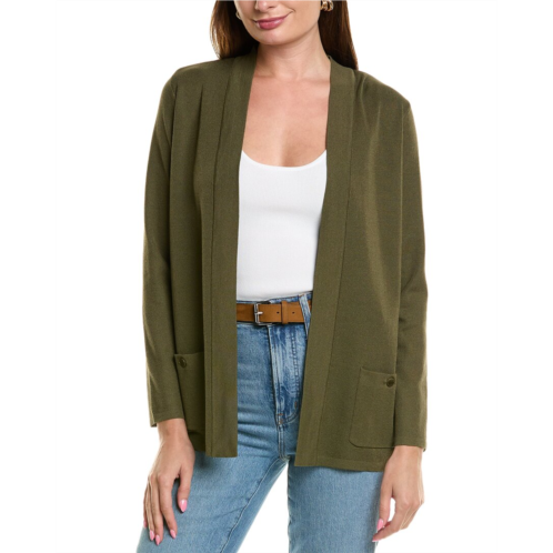 Elevate your wardrobe with the Anne Klein Malibu Cardigan. This stylish sweater features a vibrant Olive Palm color with front pockets, making it both fashionable and functional. The open front design adds a touch of effortless chic to any ensemble. Made from a blend of polyester, viscose, and other fibers, this cardigan is both comfortable and durable. Hand wash only. Imported. Approximate length is 28 inches from shoulder to hem. Add a touch of feminine sophistication to your look with this must-have piece from Anne Klein.