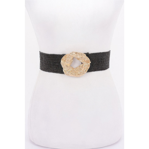[US] FASHNZFAB metal buckle elastic faux straw belt