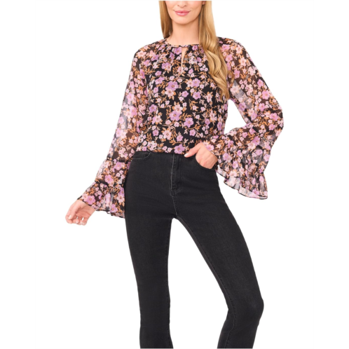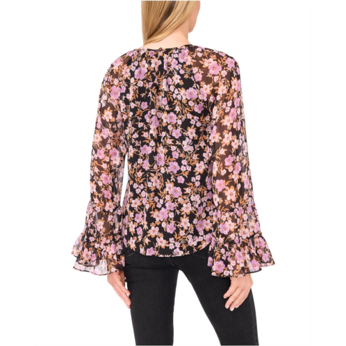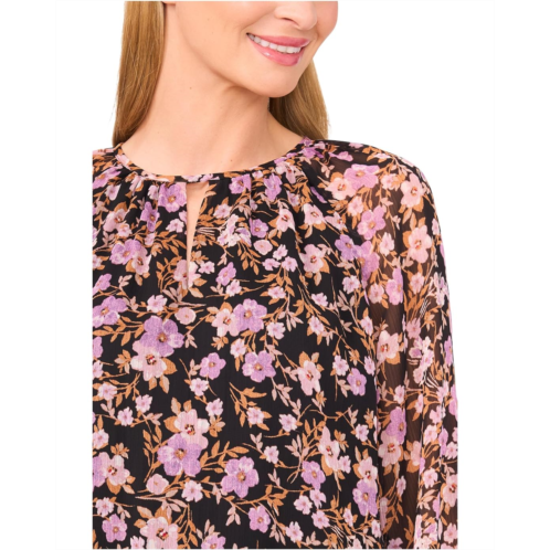 [US] CeCe Tiered Flowy Long Sleeve Keyhole Blouse