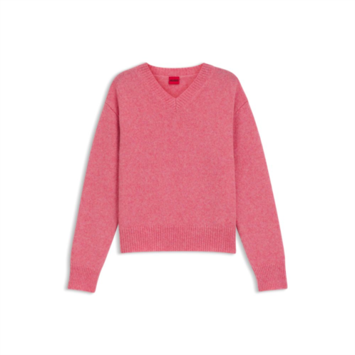 [US] HUGO v-neck sweater in wool with logo detail
