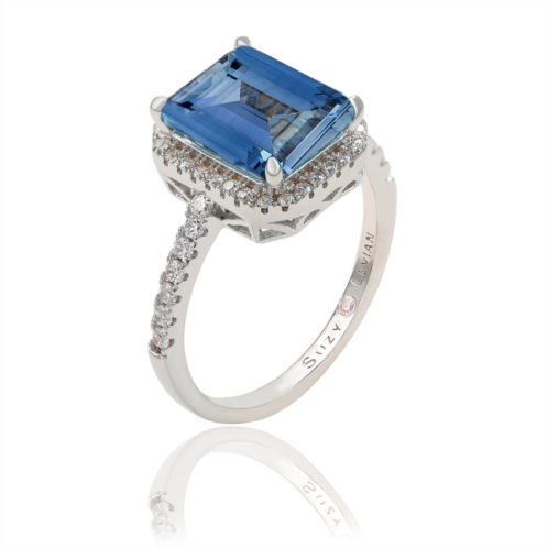 [US] SUZY LEVIAN golden sterling silver large emerald-cut green and white cubic zirconia halo ring