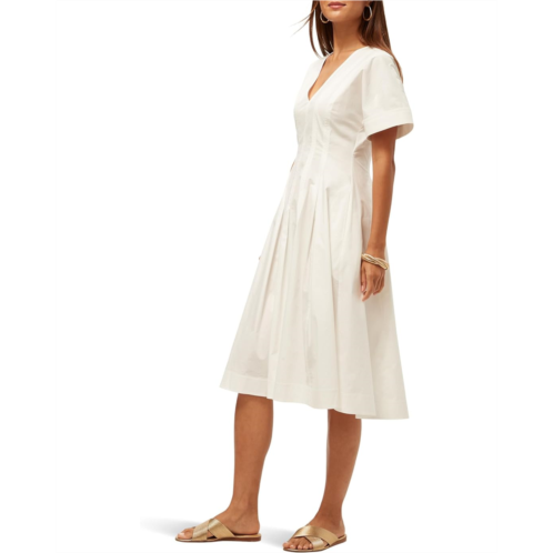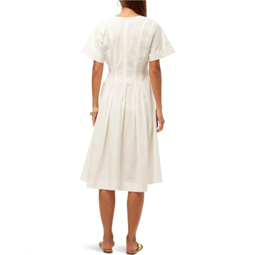 Effortlessly chic Trina Turk Ashe Dress-your new go-to for any occasion! This midi dress features a flattering V-neckline, pleated shoulders and bodice for a structured yet feminine look, and short sleeves with rolled cuffs for a touch of casual elegance. The A-line skirt creates a timeless silhouette, making it perfect for both day and night. With its combination of modern style and classic details, the Trina Turk Ashe Dress offers the ideal balance of comfort and sophistication.