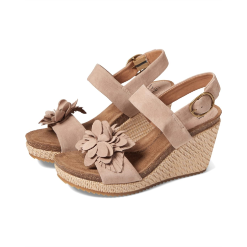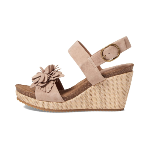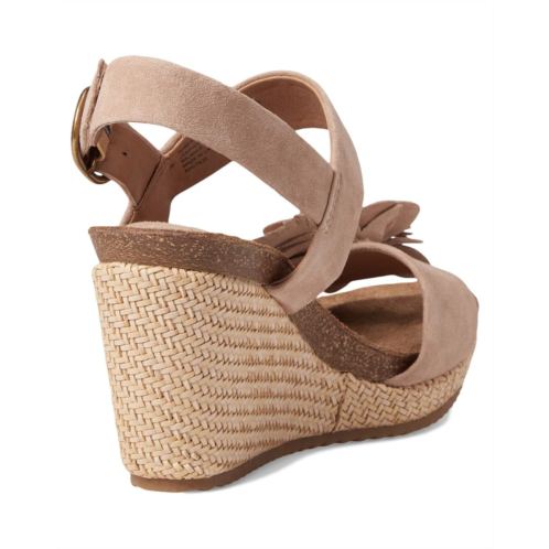 Suede-lined molded and cushioned cork footbed for all-day comfort.