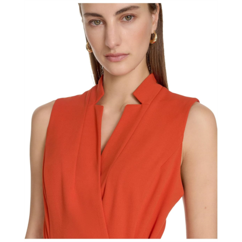 Step out in chic style in the Calvin Klein Scuba Crepe Collar Self Tie dress. Featuring V-neckline in a sleeveless design with a self tie belt and a back zipper closure. Pair it with your favorite heels or sandals for a flawless look!