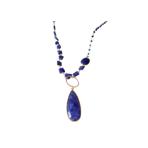 A versatile long style necklace made with sapphire. This necklace can be layered, worn as a lariat, or adjusted to have either the chunky chain or simple chain as the detail of your center piece.
