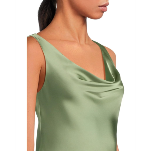 Look bold and beautiful donning the Norma Kamali Maria Mini Dress. Made from our bias cut crepe back satin, this dress is easy-care and perfect for all occasions. It features a cowl neck & back, a sleeveless design, and mini-length silhouette with a fishtail hem.