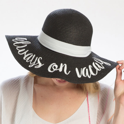 [US] FASHNZFAB always on vacay embroidery straw floppy sun hat