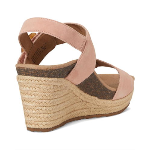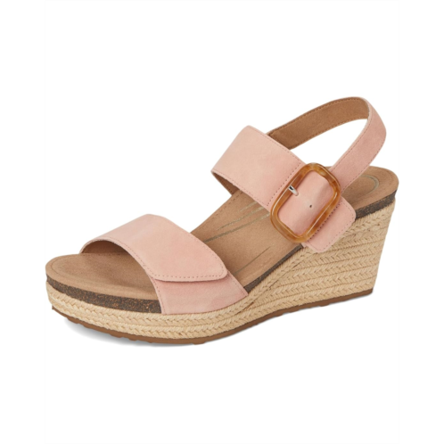 Crafted from suede upper, the Aetrex Ashley features wedge heel, open round toe, and arch support that helps to stabilize your body, align your feet and relieve common foot pain. These sandals are super stylish and comfortable. It comes with wide straps, buckled closure, and brand detailing on the footbed.