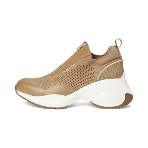 - The MICHAEL Michael Kors Zuma Slip-On Trainer redefines casual fashion with a modern twist, blending comfort and elevated style in every step. Designed with a breathable cotton knit upper, this trainer keeps your feet cool while the polyester lining and faux leather insole add a touch of luxe comfort. The sleek zippered front closure and back pull tab ensure easy entry, so slipping into your new favorite pair is effortless. Set on a built-up wedge outsole, it delivers just the right amount of lift for a flattering silhouette while maintaining all-day wearability. The durable rubber outsole keeps your stride grounded, while the fashion-forward design transitions seamlessly from athleisure to street style.