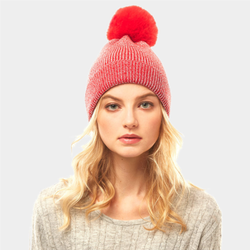[US] FASHNZFAB metallic thread pom pom beanie hat