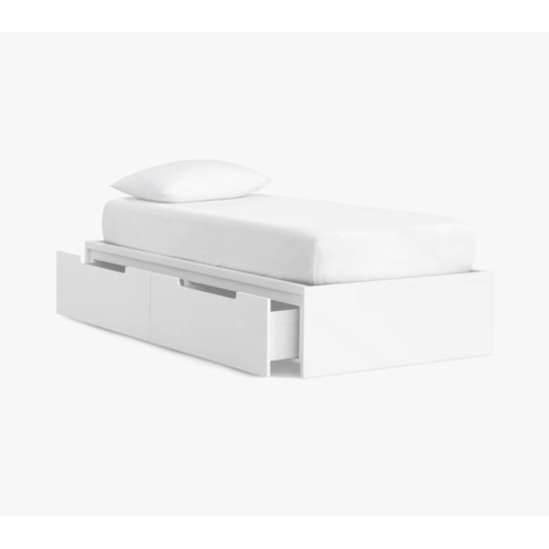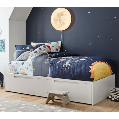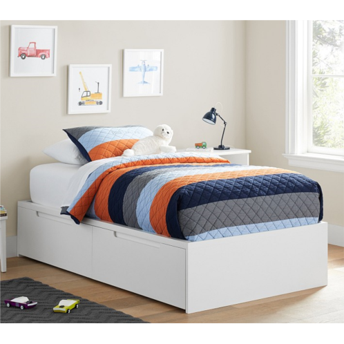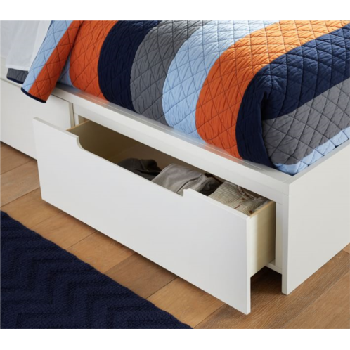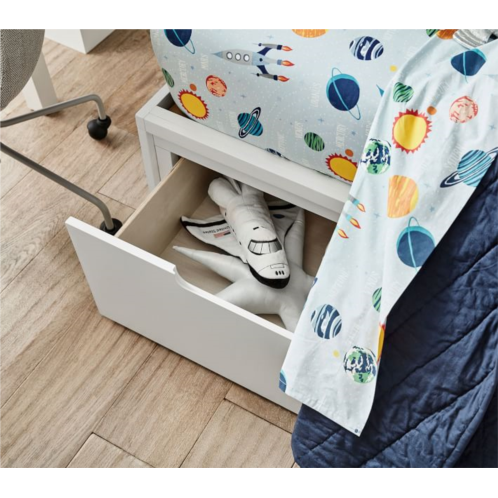 Maximize their space with our Arlen Storage Bed, expertly crafted to be both a sleep space and storage solution. The simple, modern frame features two pull-out drawers with kid-friendly safety stops that can hold bedtime essentials, toys or extra blankets and sheets.