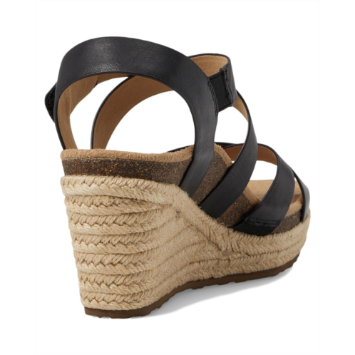 The Aetrex Anna wedge heeled sandals feature ankle strap buckle with hook-and-loop closure, open round toe design, and brand detailing on the footbed. It has leather upper and suede insole.
