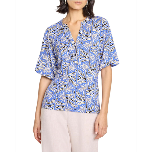 The NIC+ZOE Ocean Jewel Top is an easy pullover cut-and-sew designed with seaside vibes in mind. The impressionist ocean print pairs perfectly with your next long walk on the beach and your favorite pair of warm weather denim. With roomy lined puffy sleeves and a unique split neck collar that creates a more sophisticated shape.