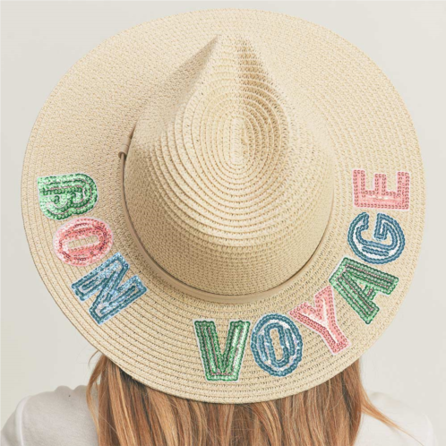 [US] FASHNZFAB bon voyage sequin message straw panama sun hat