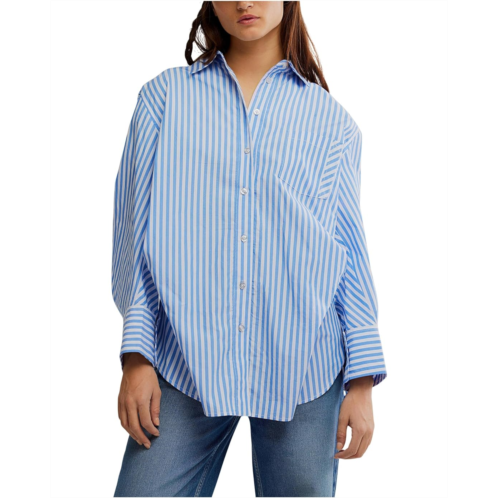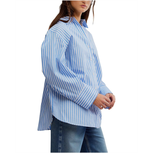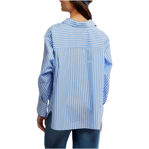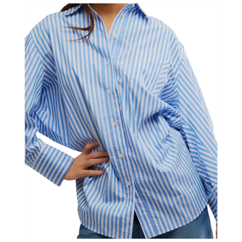 Your new go-to shirt, now in stripe. A bold twist on a classic, this staple button-down is crafted from crisp cotton and designed with a unique cinched silhouette-making it anything but ordinary, yet just as essential. Intentional design details give this shirt a tucked, billowy shape unlike any button-down in your wardrobe. Featuring a cotton poplin fabrication, darting at front for waist-accentuating effect, collared neckline, button-front closure, patch pocket, drop-shoulder dolman sleeves, button cuffs, back pleats, and striped print.