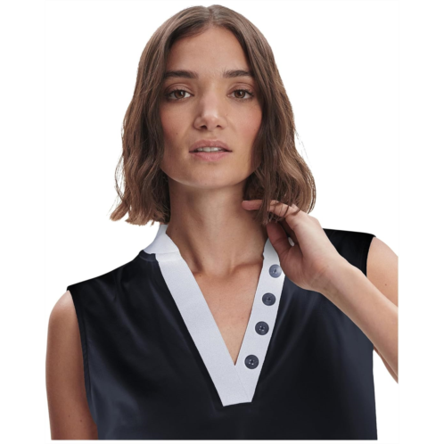 Propel your fitness journey stylingVarleyShelby Performance Tank, an embodiment of strength and agility. Experience unmatched breathability and comfort with its relaxed fit, four-buttoned neck, and stepped back hem. Enjoy full coverage and a flattering drape, while the retro-inspired contrast binding at the armholes adds a touch of style. Dominate your fitness goals with this sleeveless essential.