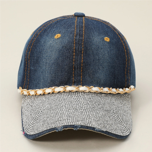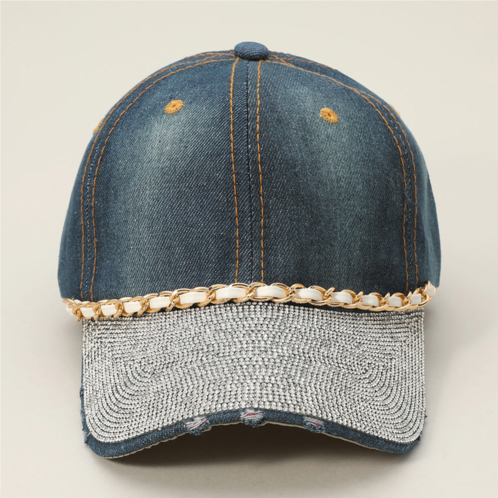 [US] FASHNZFAB chain detail bling studded brim denim vintage baseball cap